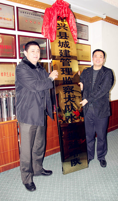 ,紹興縣城建管理監(jiān)察大隊水務執(zhí)法中隊成立授牌儀式在排水公司舉行。縣城管辦副主任許立人、集團公司副總經理馮梁峰等領導參加儀式。
